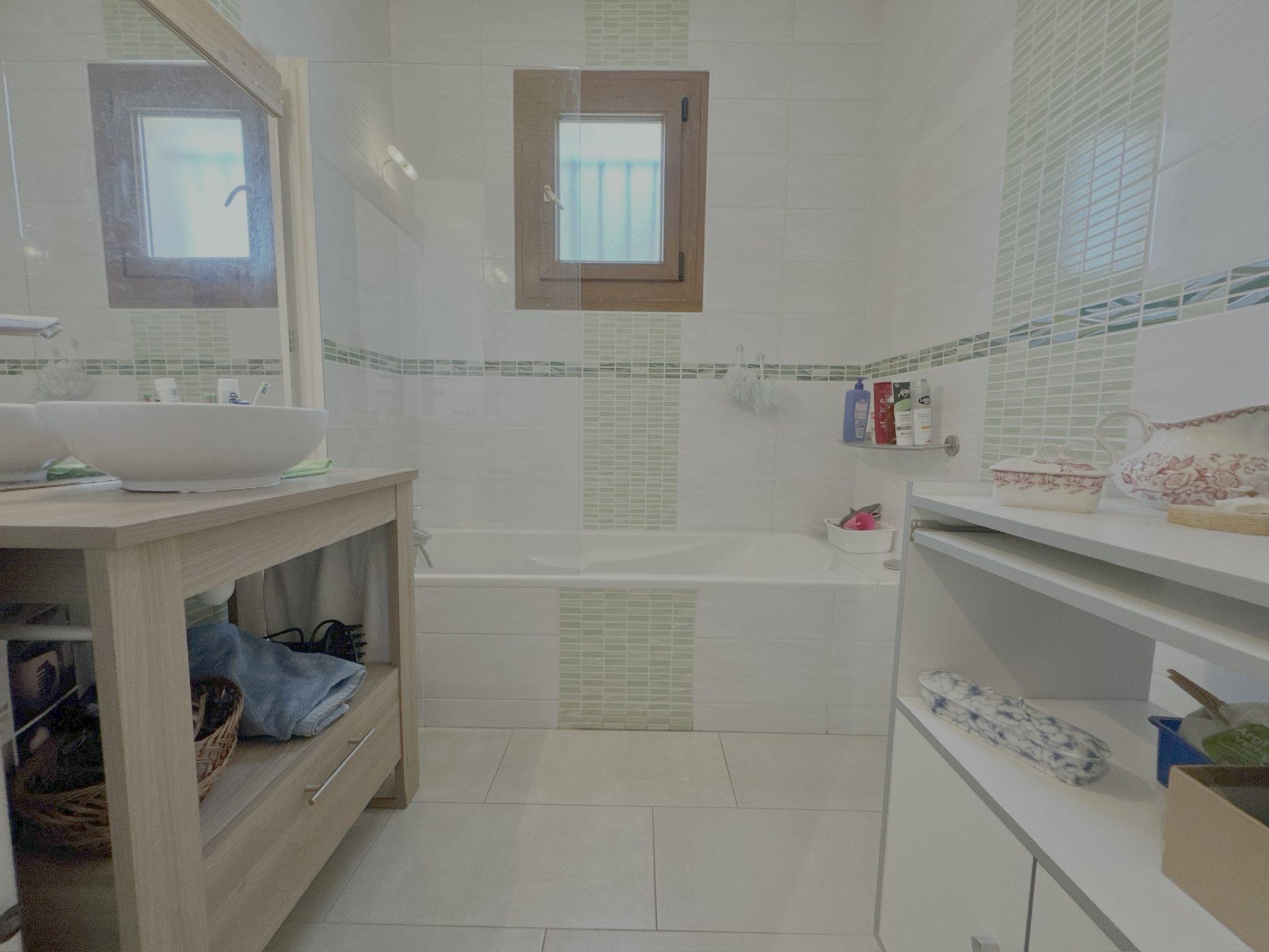 Une salle de bain avec baignoire, vasque de 3,70 m² et des WC indépendants.