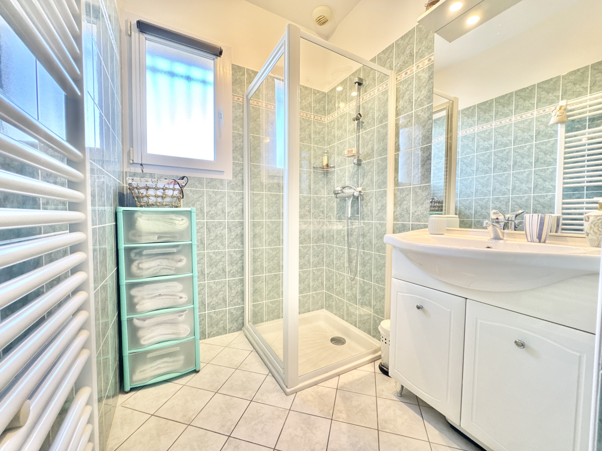 Côté nuit, vous disposez de trois chambres confortables : une première de 12,60 m² avec salle d’eau, douche italienne et double vasque de 7,60 m², une deuxième chambre de 10,40 m², et troisième chambre de 12 m² et une salle d’eau indépendante.