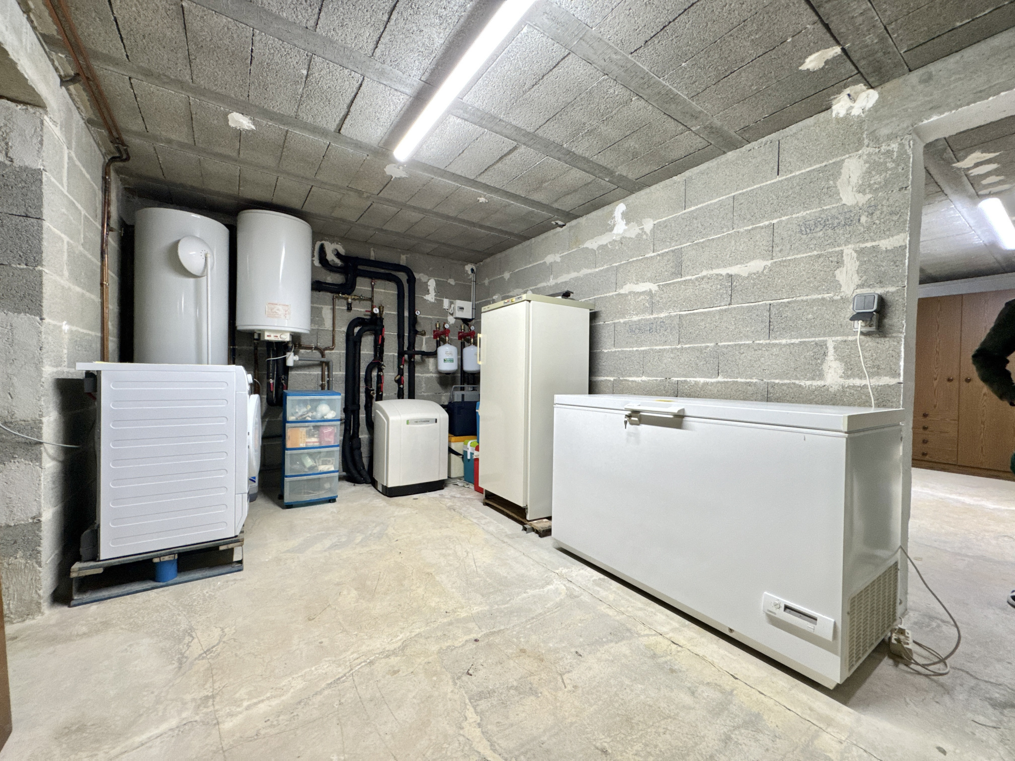 Sur le sous-sol, autant d’espace qu’au rez-de-chaussée avec grande cave, chaufferie buanderie, réserve, cuisine d’été de 36 m², WC indépendants, salle d’eau à remettre en fonction très facilement, si besoin possibilité de créer un appartement indépendant, double garage pour deux véhicules avec porte électrique et atelier de bricolage de 26,30 m².