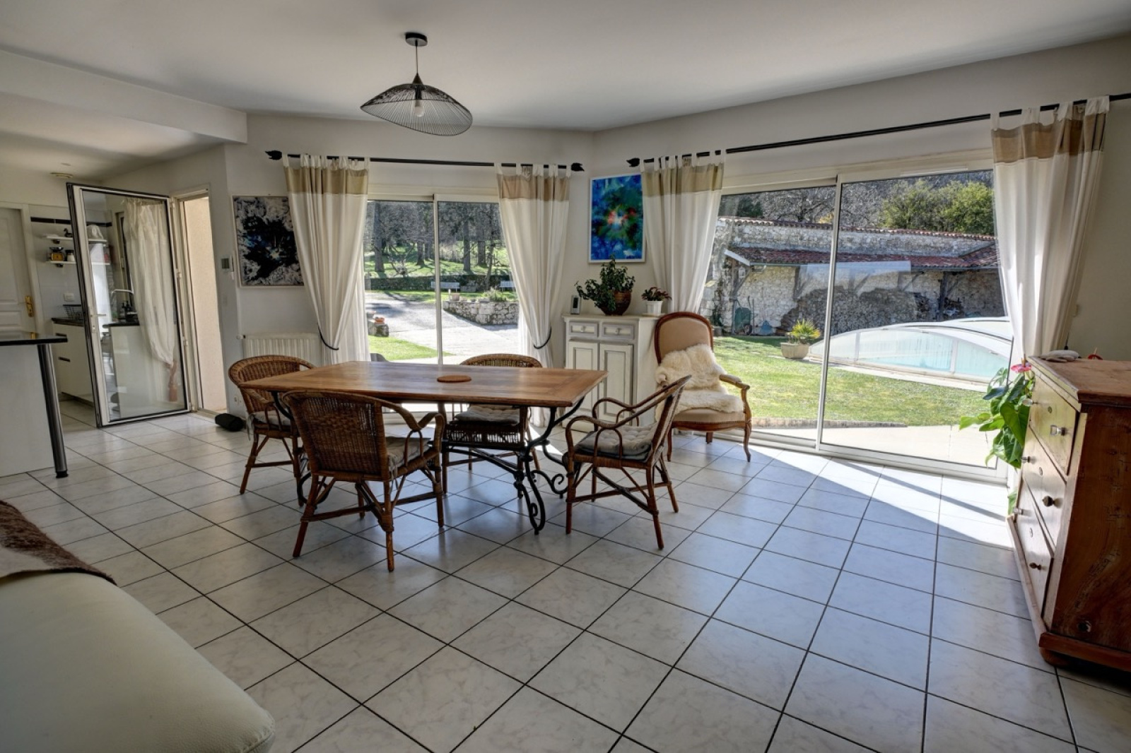Confort : La maison dispose dans son intégralité de double vitrage en aluminium, d’Internet par fibre, d’un portail en fer forgé automatique, d’un chauffage central au fioul et d’une fosse septique.