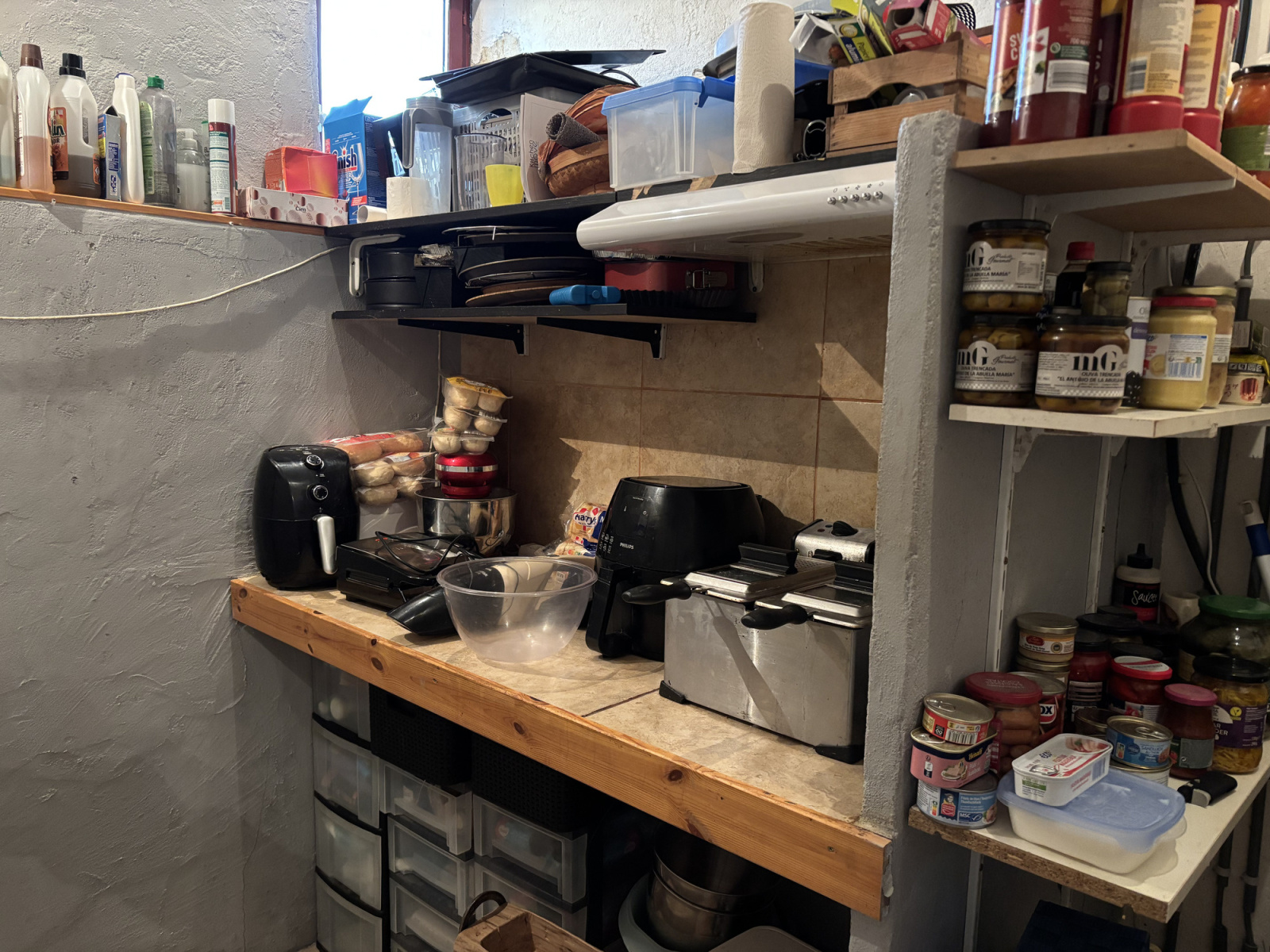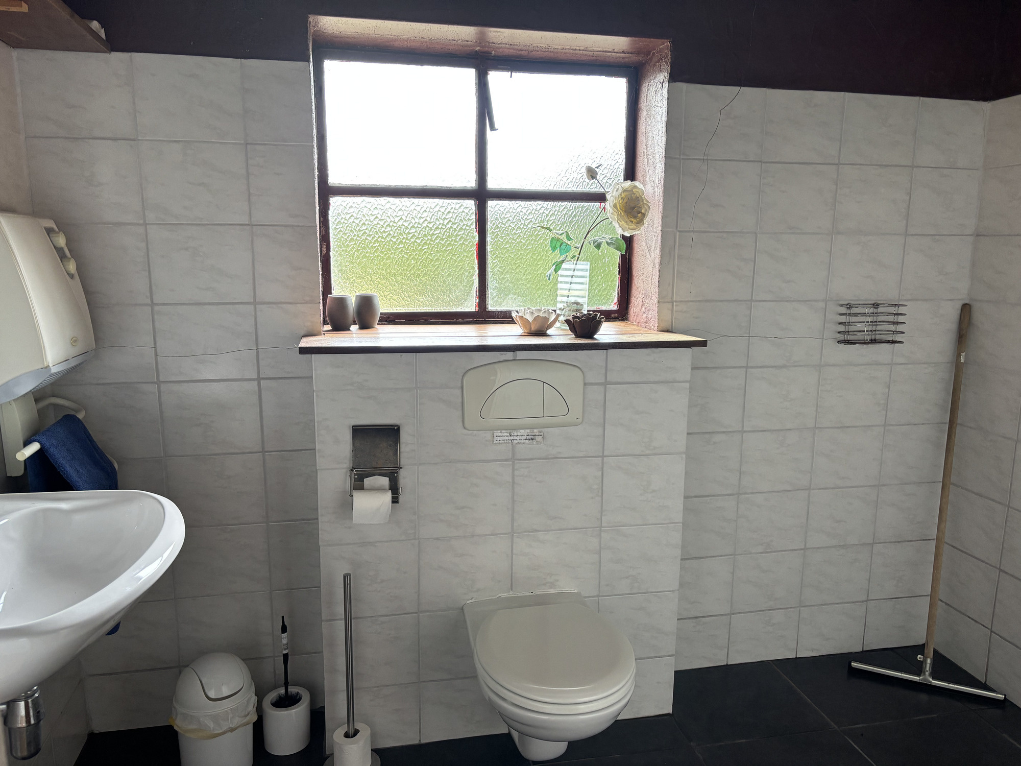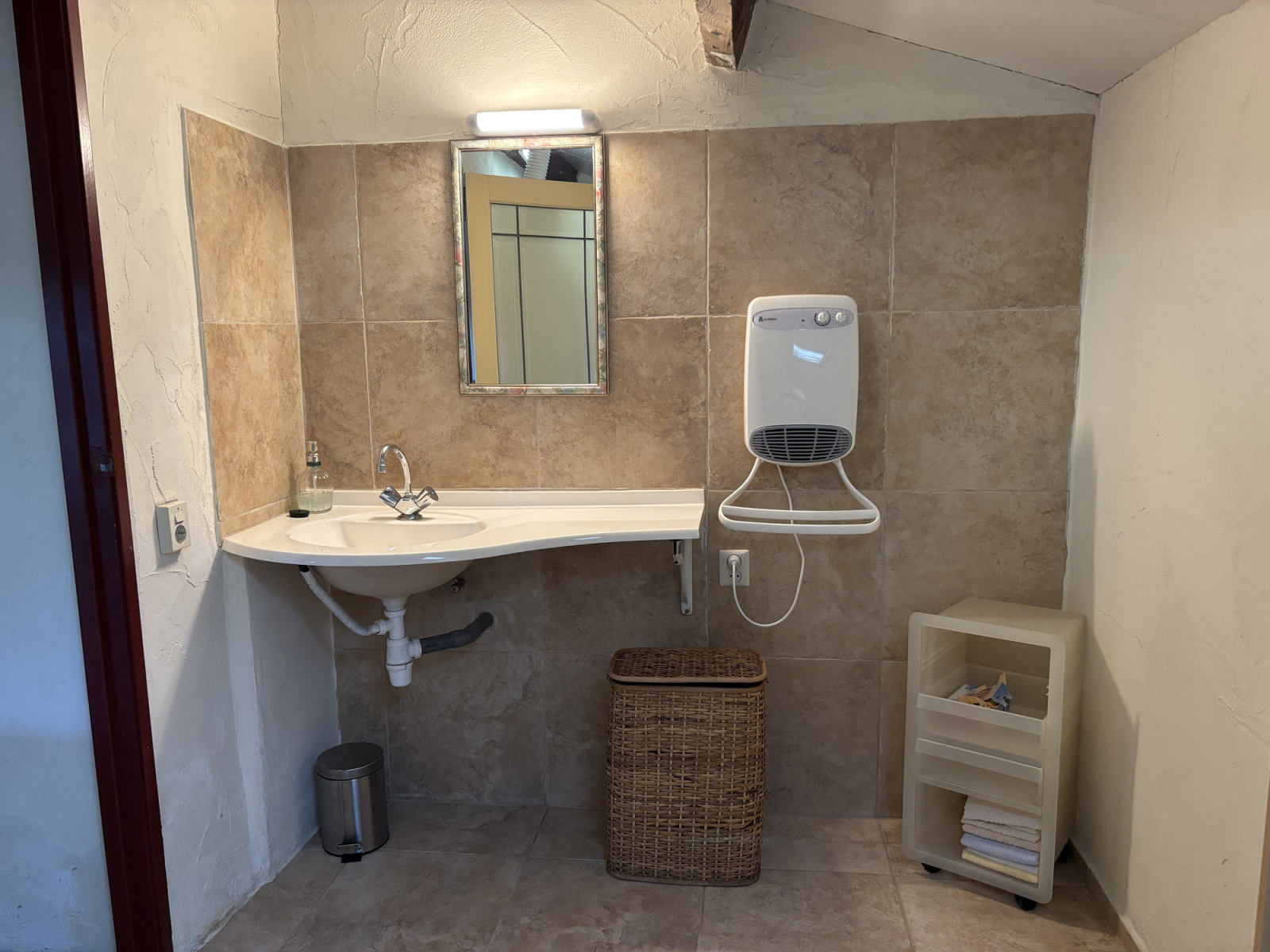 A côté de la cuisine se trouve une salle d’eau avec toilettes, lavabo, douche ouverte et chauffe-eau. Cette dépendance offre de nombreuses possibilités en tant qu’espace d'hébergement pour amis ou gîte à louer.