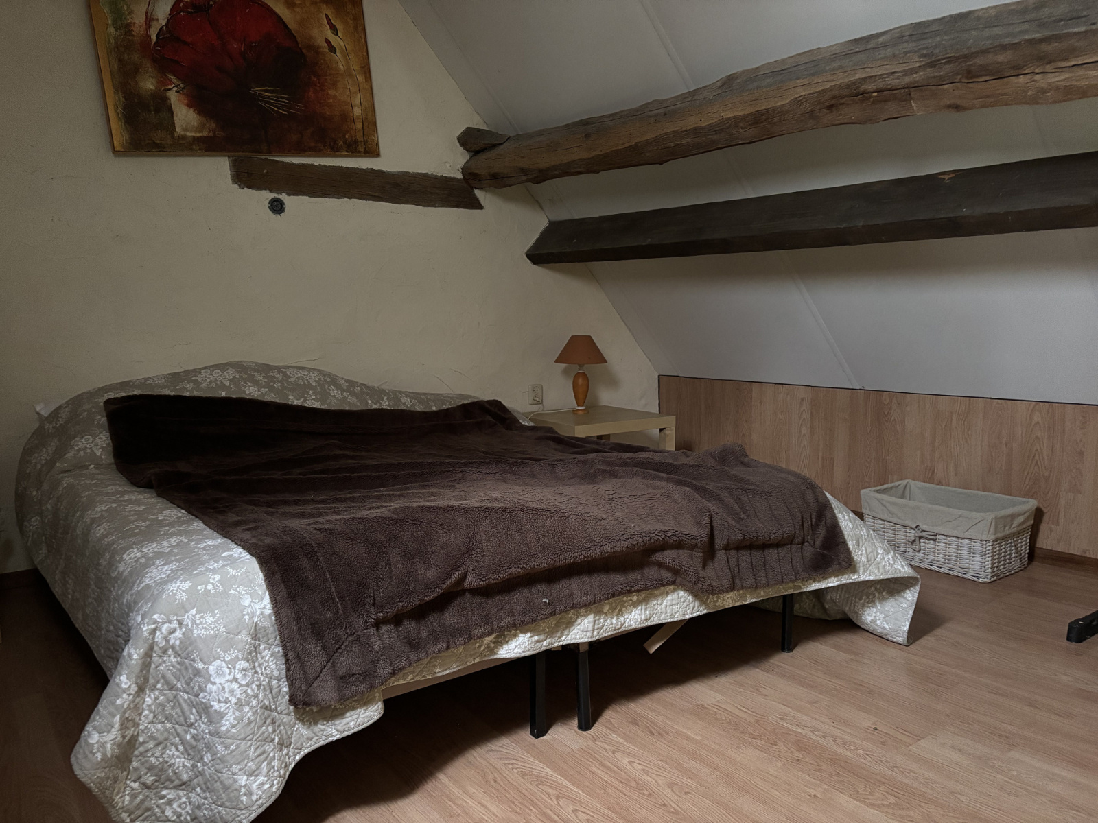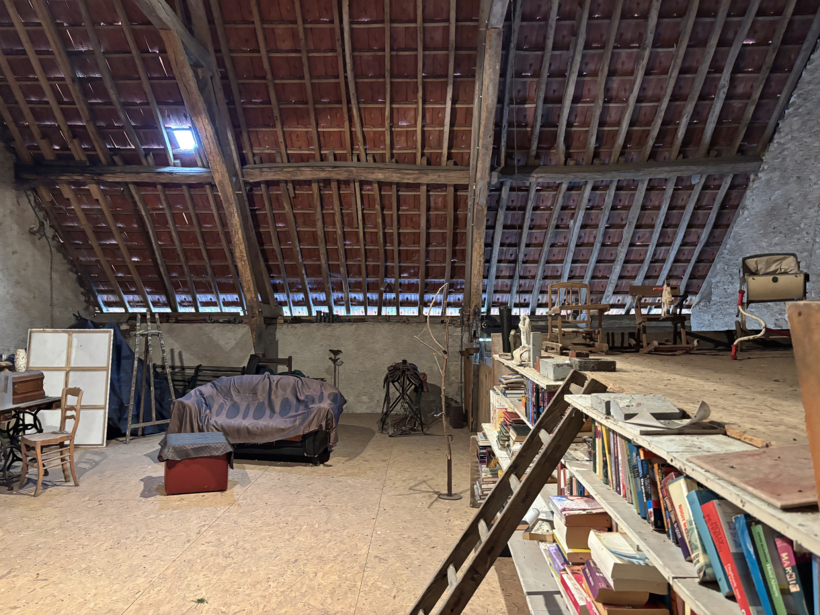 Au premier étage se trouve une très grande chambre ouverte, accessible par l'escalier du hall. Il y a également un wc et une baignoire. Cet espace peut être divisé pour créer plusieurs chambres