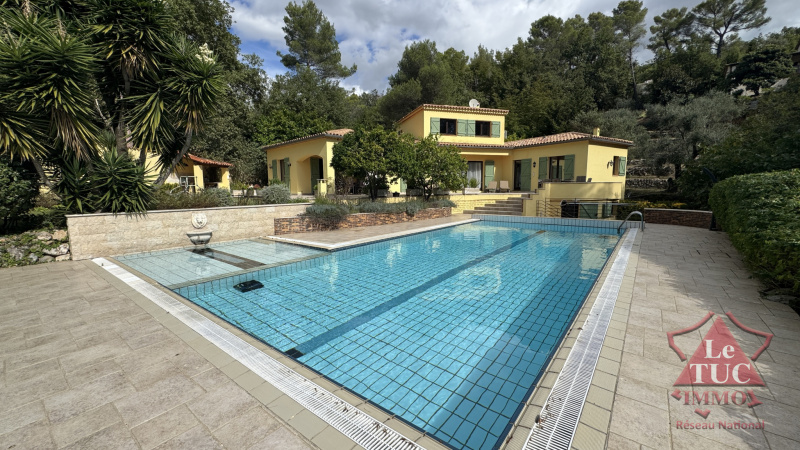 Les atouts: quartier résidentiel calme et verdoyant, prestations soignées et maison en excellent état, volumes généreux et belle luminosité, grande piscine et terrasse couverte, proximité des commodités et aéroport Nice, surface habitable : 216 m², garage et annexes : 43 m²
