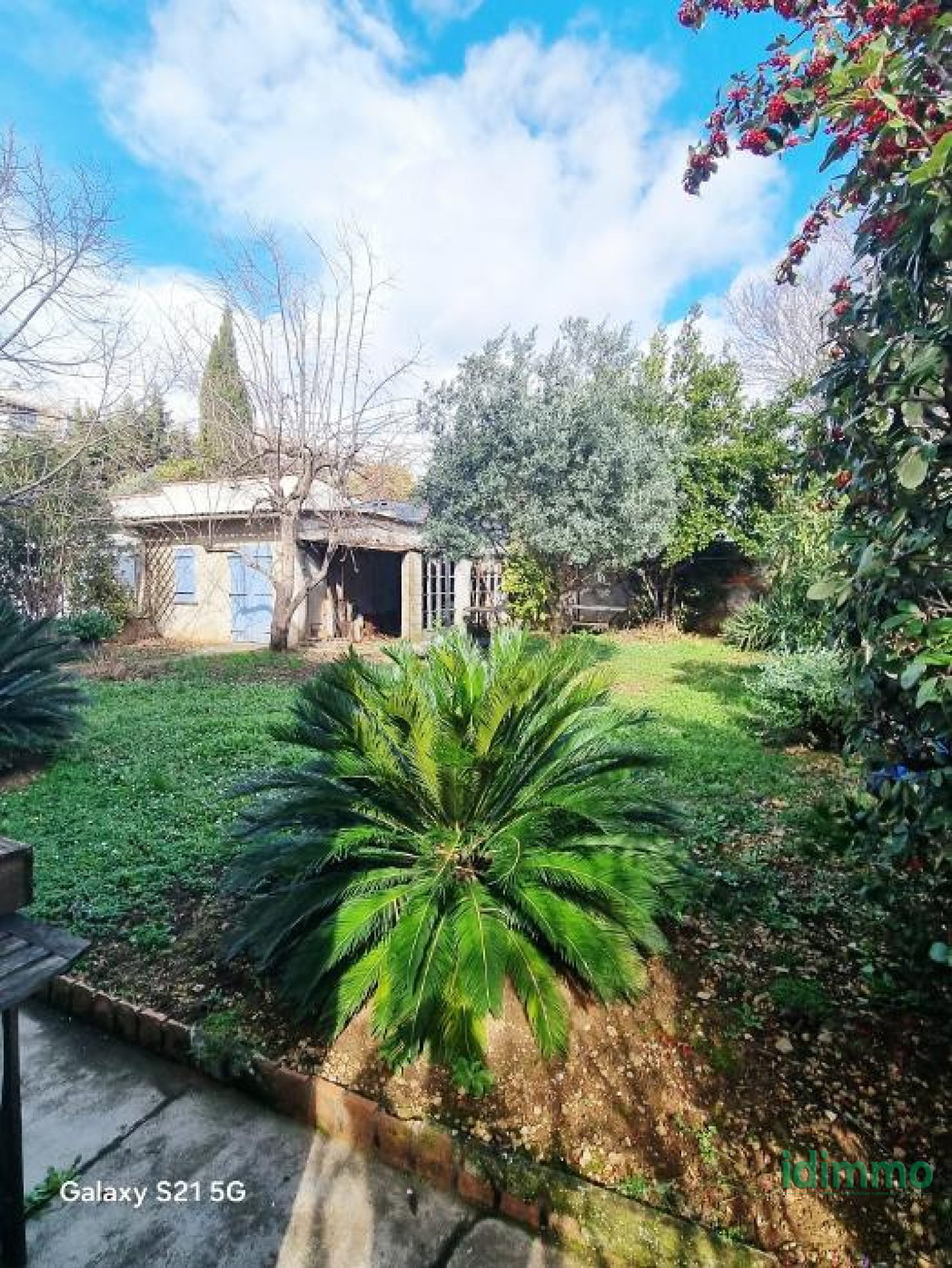 L'Extérieur ; vous retrouvez un beau terrain plat et clos et arboré de 445m rélié au tout à l'égout .