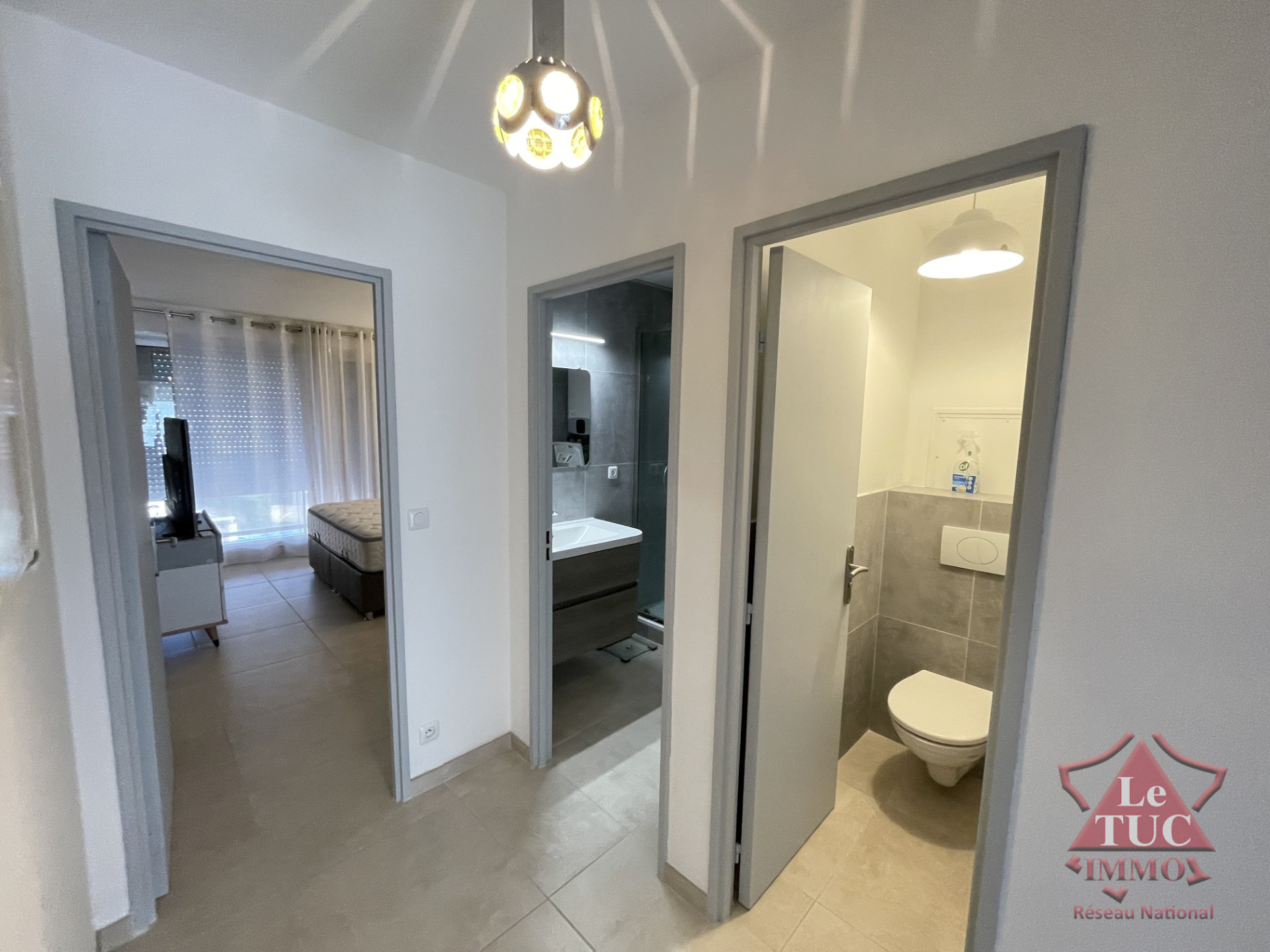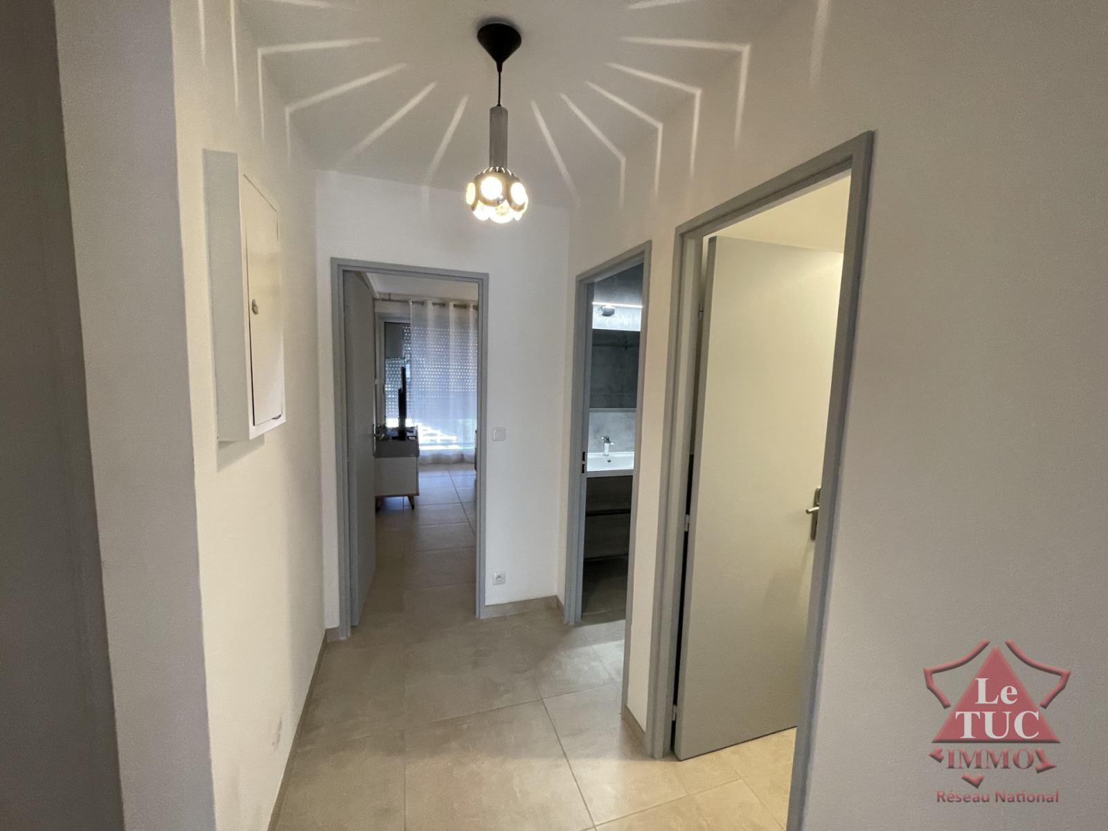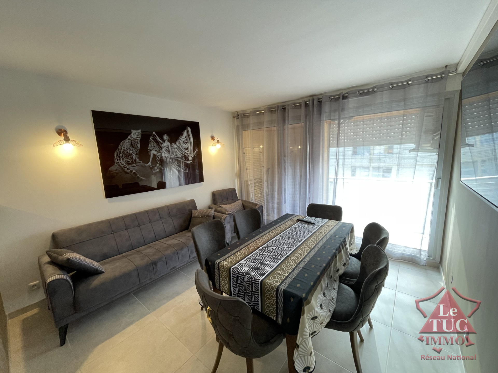 Situé au 3 eme et avant dernier étage avec ascenseur, dans une résidence sécurisée du centre ville avec piscine, maginifique appartement récemment rénové, traversant avec deux terrasses, composé d'une entrée avec placard, d'un séjour avec cuisine américaine équipée, et petite terrasse exposée au sud, un couloir de dégagement, menant à une chambre sapcieuse avec grand placard, et terrasse, ainsi qu'à une salle d'eau et à des wc séparé. Ce bien est vendu avec une cave, ainsi qu'un emplacement de parking privatif.
