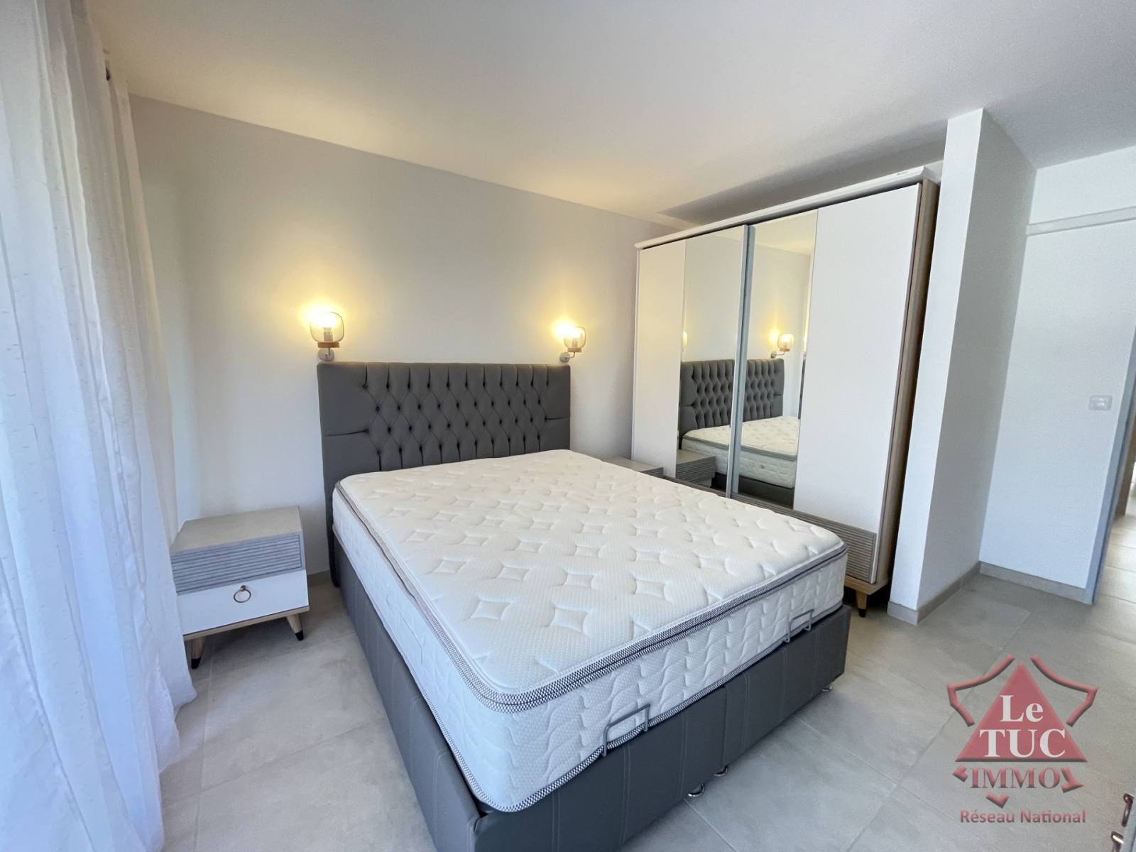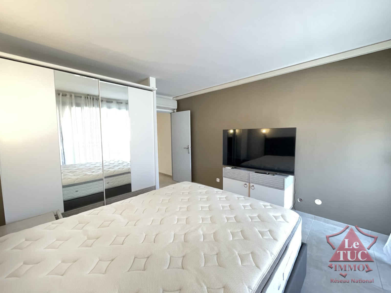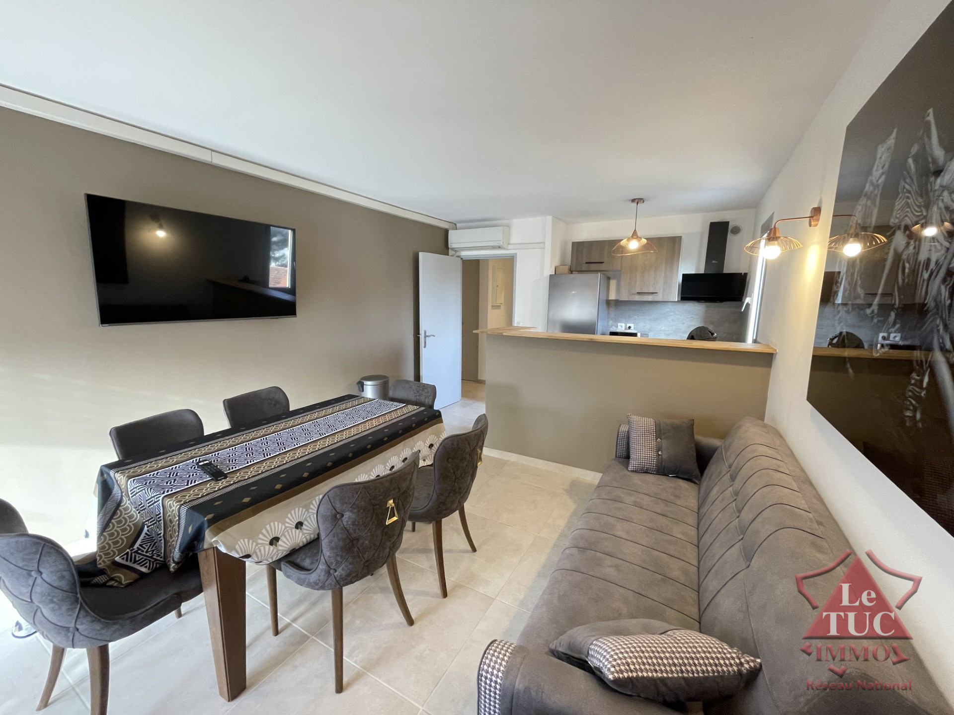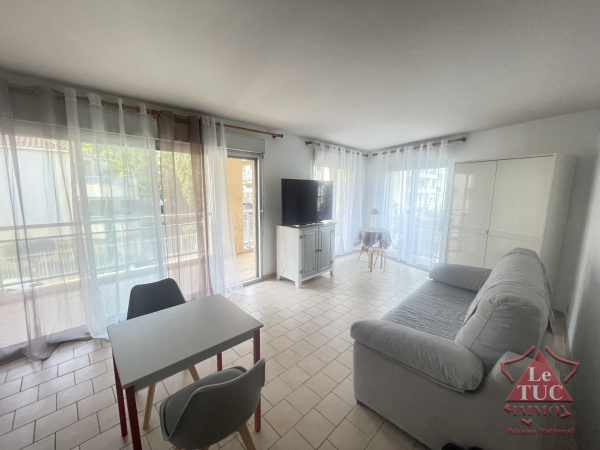 Situé au 3 eme et avant dernier étage avec ascenseur, dans une résidence sécurisée du centre ville avec piscine, maginifique appartement récemment rénové, traversant avec deux terrasses, composé d'une entrée avec placard, d'un séjour avec cuisine américaine équipée, et petite terrasse exposée au sud, un couloir de dégagement, menant à une chambre sapcieuse avec grand placard, et terrasse, ainsi qu'à une salle d'eau et à des wc séparé. Ce bien est vendu avec une cave, ainsi qu'un emplacement de parking privatif.