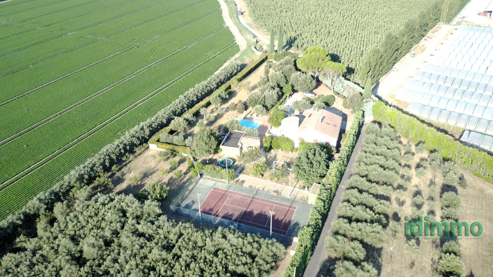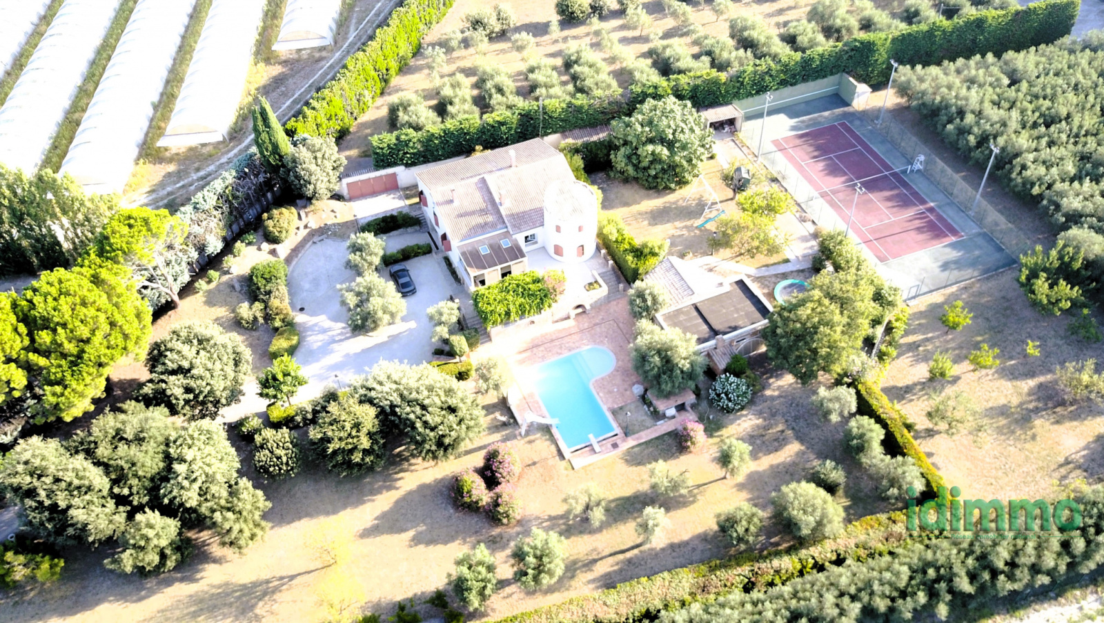 - une maison principale agrémentée d'une jolie tour, d'une superficie totale de 202m² sans vis à vis, comprenant une lumineuse salle à manger/salon, cuisine indépendante ouverte sur une véranda récente, 5 chambres (dont une avec salle d'eau privative), une salle de bains, toilettes, un sous-sol/garage de 174m², une piscine de 8x4m avec son pool house entièrement aménagé avec sa cuisine d'été équipée, pièce à vivre, douche, WC, barbecue empierré, terrain de tennis, boulodrome,