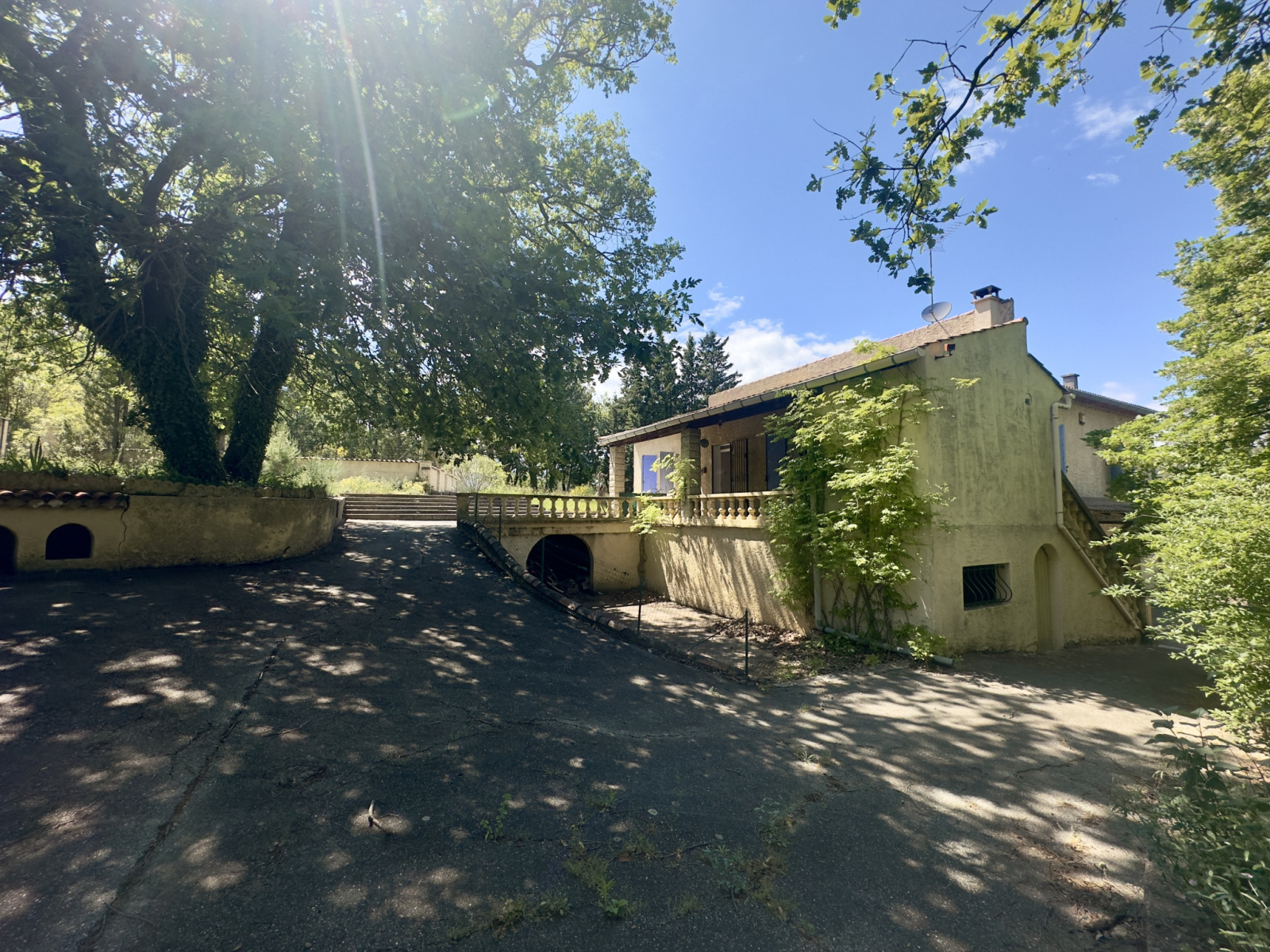 Sur les hauteurs de Mornas, villa à rafraichir sur un terrain 1 hectare environ, avec piscine, sous-sol et dépendance.