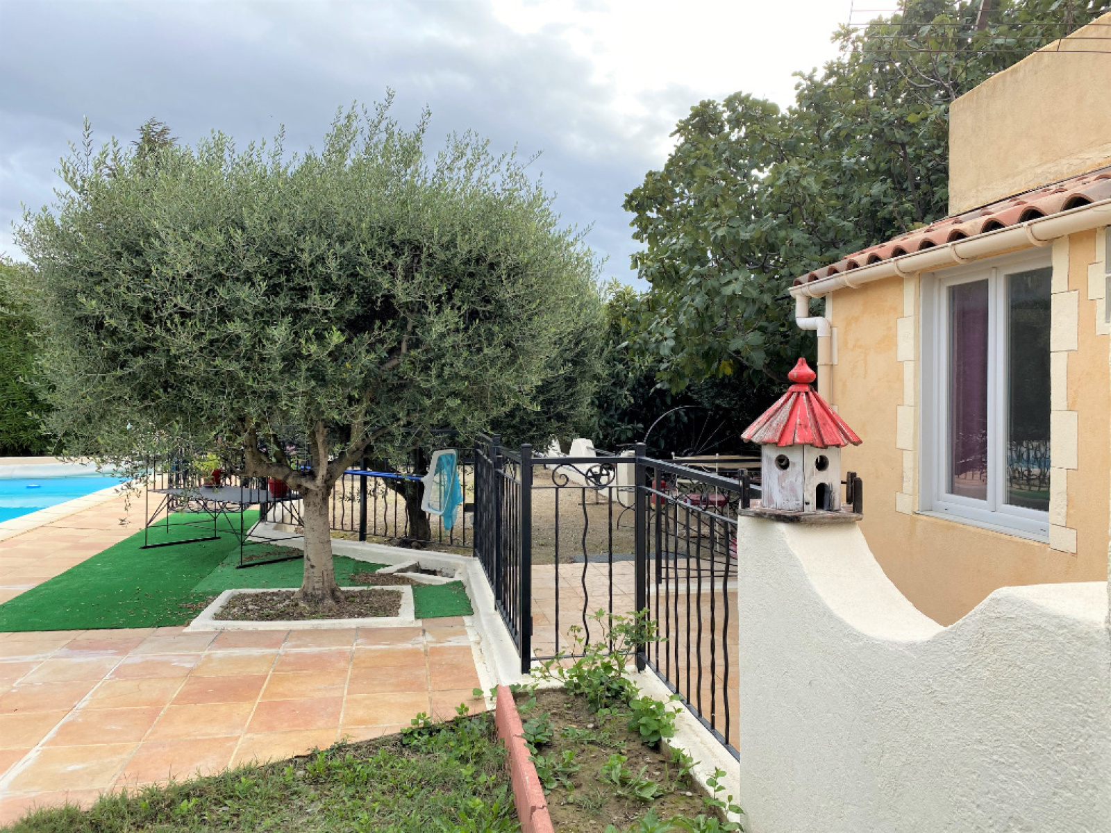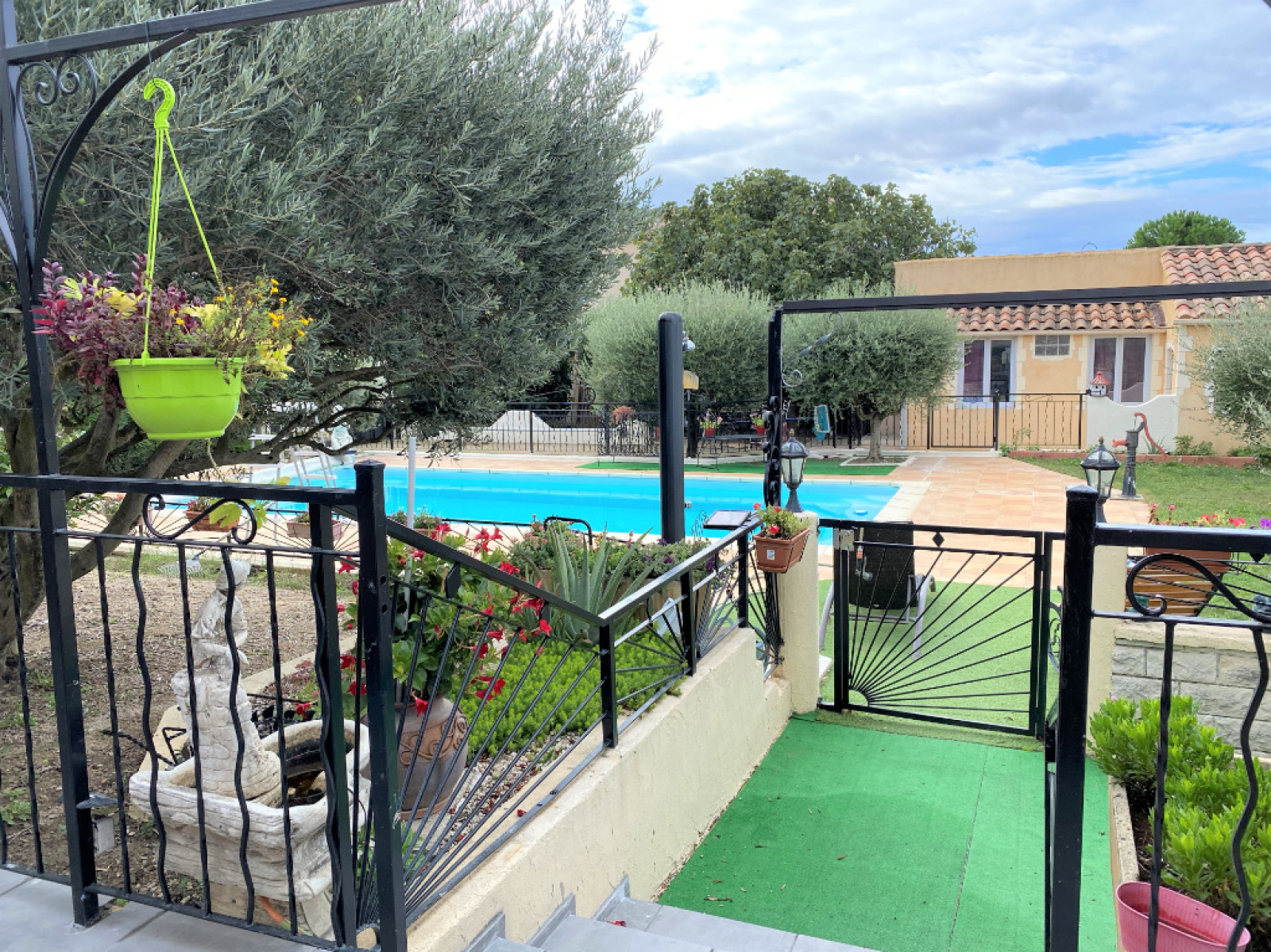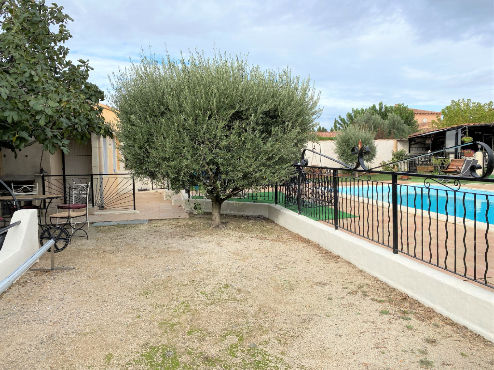 Camaret sur Aigues, dans un environnement privilégié et à proximité du centre du village, jolie maison de plain pied au calme et bien entretenue de 96 m² sur un terrain clos et arboré de 1050 m², avec piscine et atelier indépendant. La villa se compose d'un double séjour avec cheminée, d'une cuisine semi-ouverte, aménagée et équipée, ouvrant sur une véranda orientée Sud, 3 chambres, une salle d'eau spacieuse, et un garage communiquant avec la cuisine. La terrasse vous mènera au jardin et à la piscine (9x4). L'atelier indépendant d'une surface de 40 m² est accessible à la fois par le jardin et par un second portail à double battant, offrant une indépendance totale de cette partie de la propriété. Un second garage, indépendant, complète ces prestations, ainsi qu'une cuisine d'été et un forage. Cette propriété vous séduira par son caractère à la fois intime, familial et convivial. Proche de toutes commodités, et à 10 km des entrée/sortie de l'autoroute A7 et à 7 km de la gare d'Orange. Renseignements et visites Hélène ROBOREL de CLIMENS Agent Commercial Indépendant Tél 06.52.07.39.23 RSAC AVIGNON 853663797