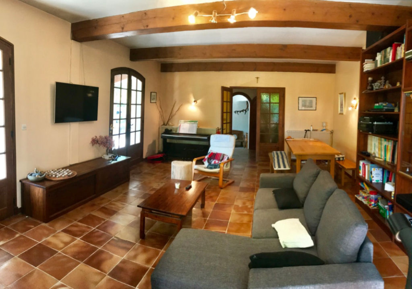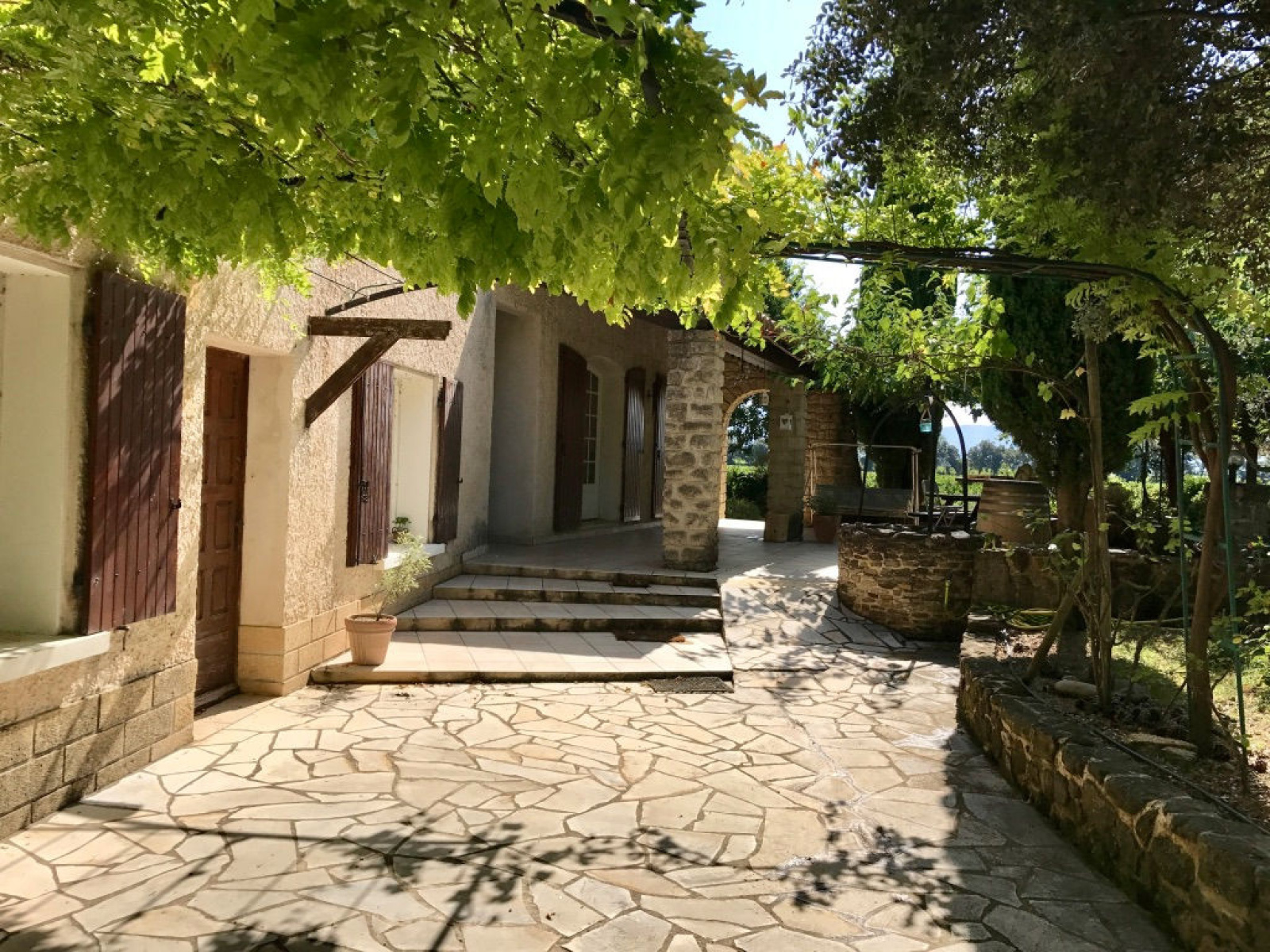 Mas Provençal 220 m2 sur terrain clos de 1850 m2 piscinable. Cette jolie propriété est composée au rez-de-chaussée d'une grande pièce à vivre avec cheminé ouvrant sur deux terrasses l'une à l'Est et l'autre couverte au Sud, une grande cuisine indépendante aménagée, un bureau, une chambre et une salle de billard. A l'étage 3 chambres dont une suite parentale communiquant avec une très grande terrasse solarium ( environ 100 m 2 ) dont une partie couverte. La maison possède en outre une grande cave- salle de jeux enterrée, un grand abri pour deux véhicules avec rangement, un espace cuisine d'été couvert avec four à pain. Le terrain permettra l'installation d'une belle piscine suivant besoin.. Côté confort la maison est pourvue d'un chauffage centrale et de la climatisation réversible dans certaines pièces. Une alarme, un portail électrique, un puit ( + un droit d'eau ) viennent compléter l'ensemble. Située en plein coeur de la Provence avec une très belle vue sur le Mont -Ventoux et les dentelles de Montmirails la propriété se trouve à 10 km d'Orange, 15 km de Vaison-la-Romaine. Accessible facilement grâce à la proximité des entrées d'autoroutes A7 et A9 ( 10 km ) et des gare TGV ( Orange 15 mn , Avignon TGV 40 minutes ) cette belle propriété pourra convenir également à une petite activité de chambres d'hôtes. Quelques travaux de rafraichissement intérieurs restent à prévoir. Renseignements et visites, Christian PERNELET agent commercial indépendant Tél: 0674130869 RSAC AVIGNON 421210816