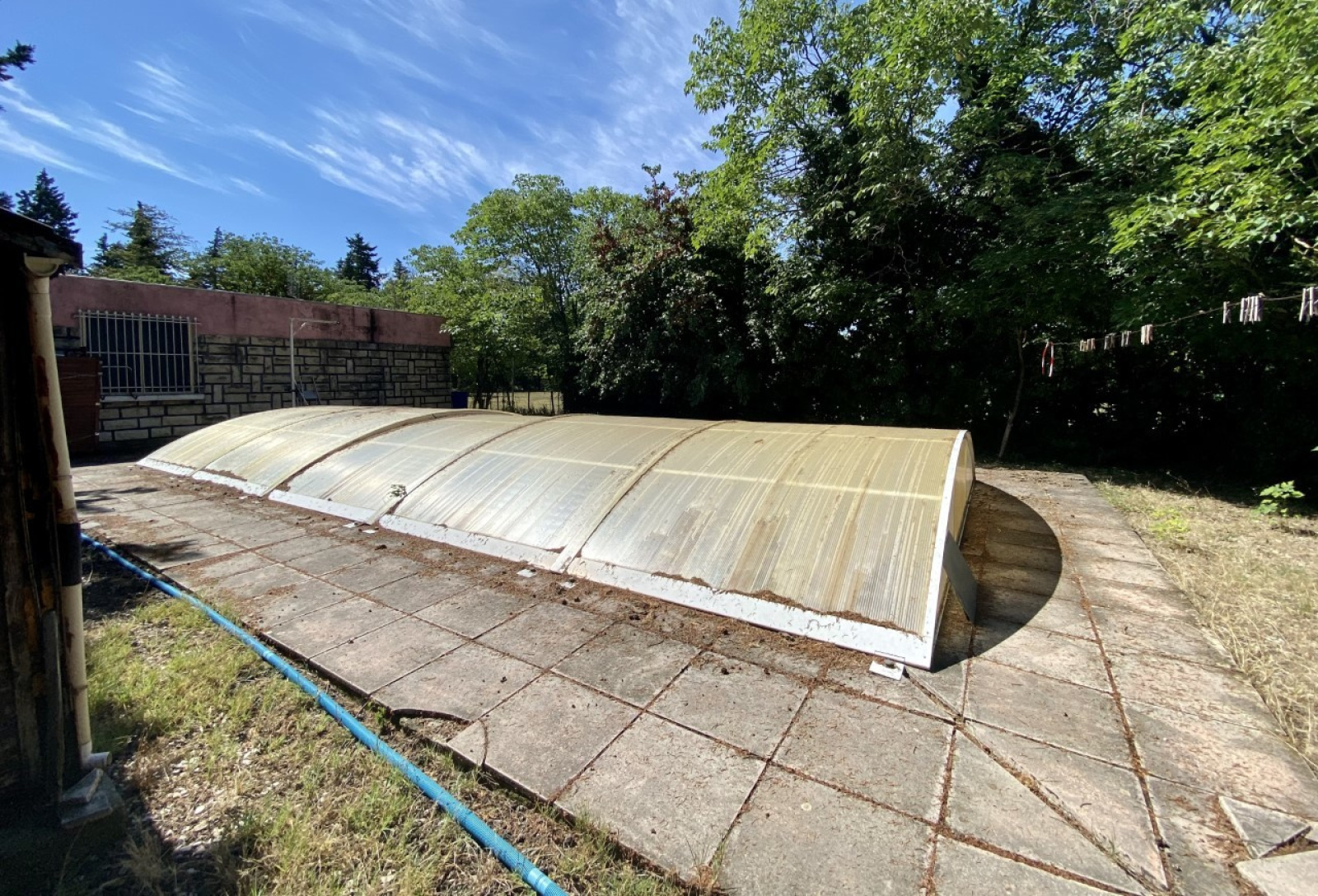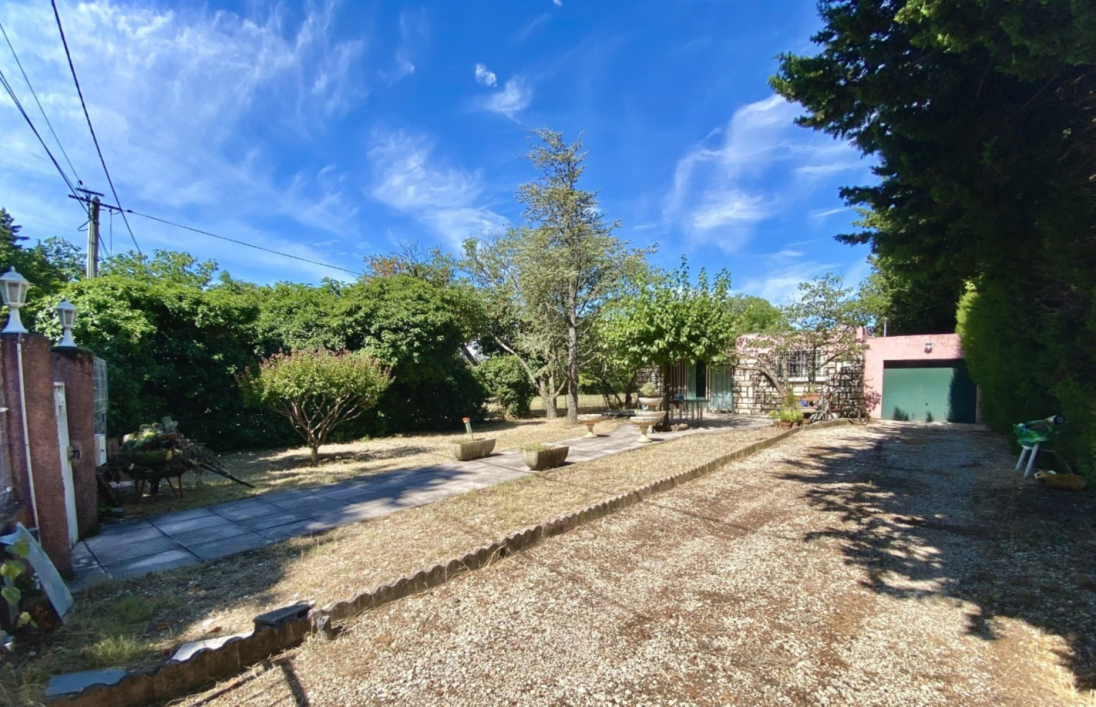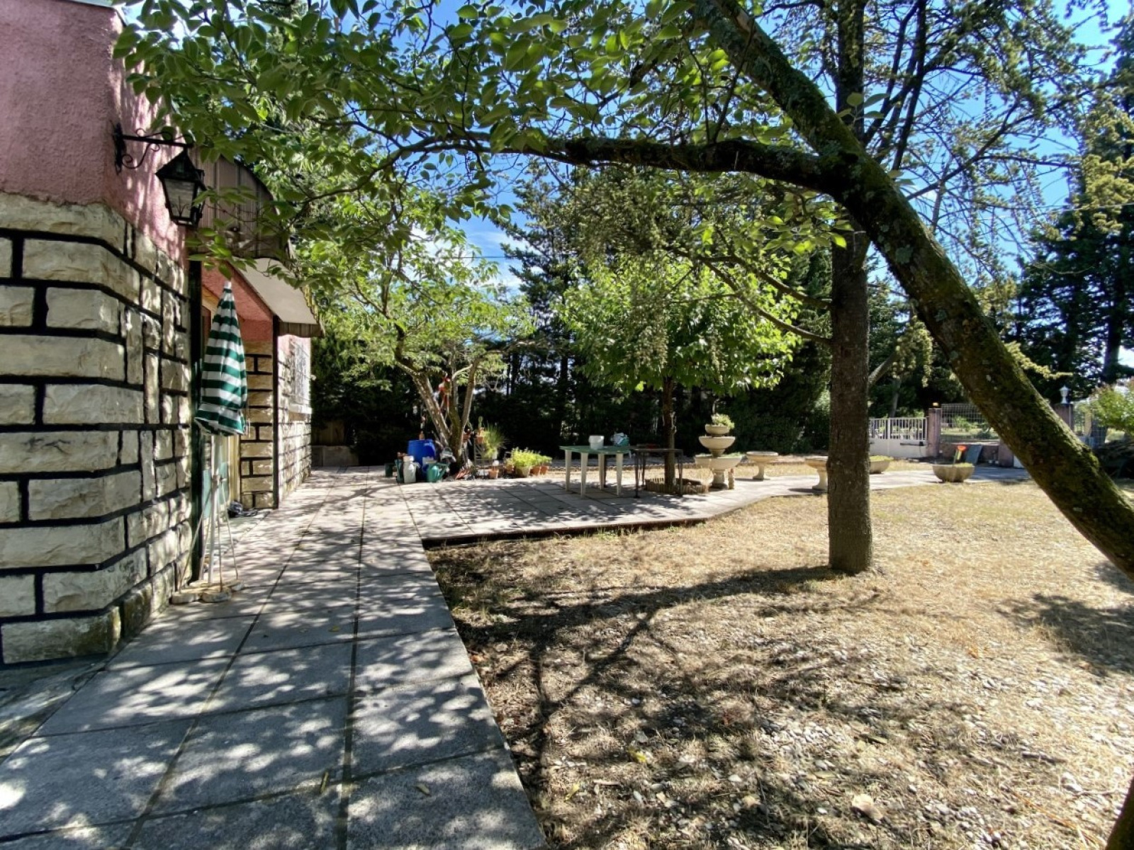 Le jardin est arboré et en partie cloturé, et agrémenté d'une piscine (8x4) à l'ouest de la maison.