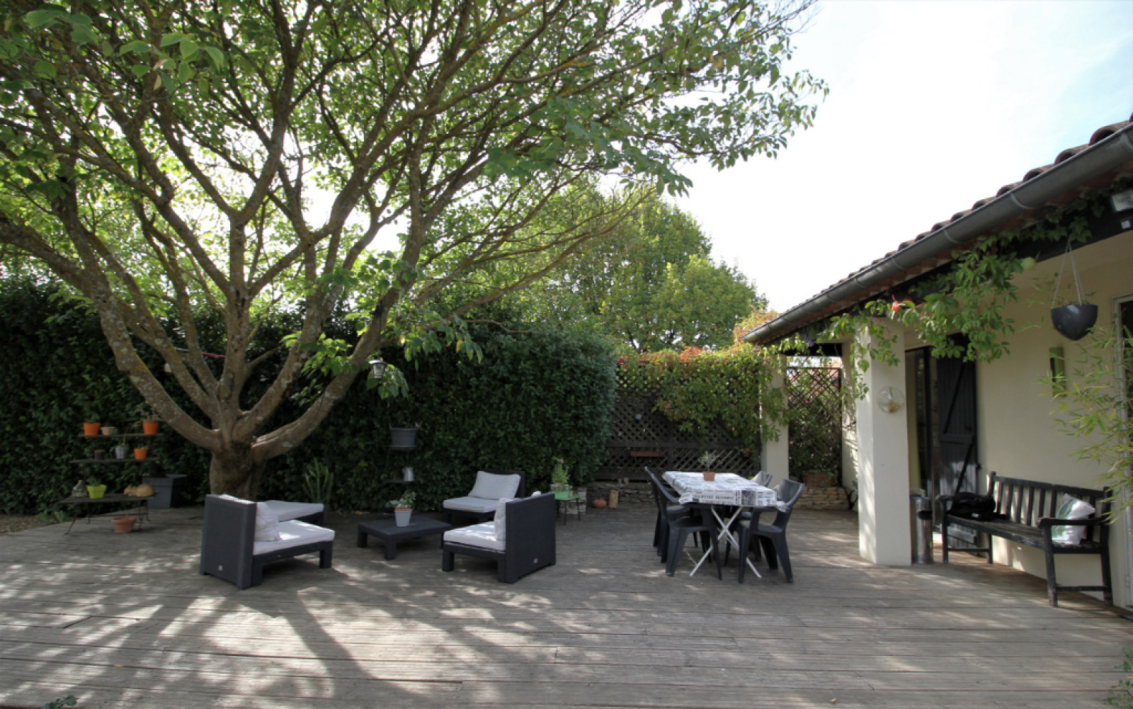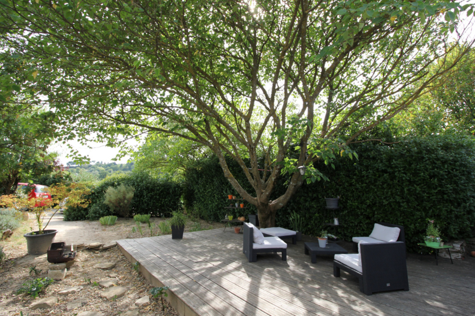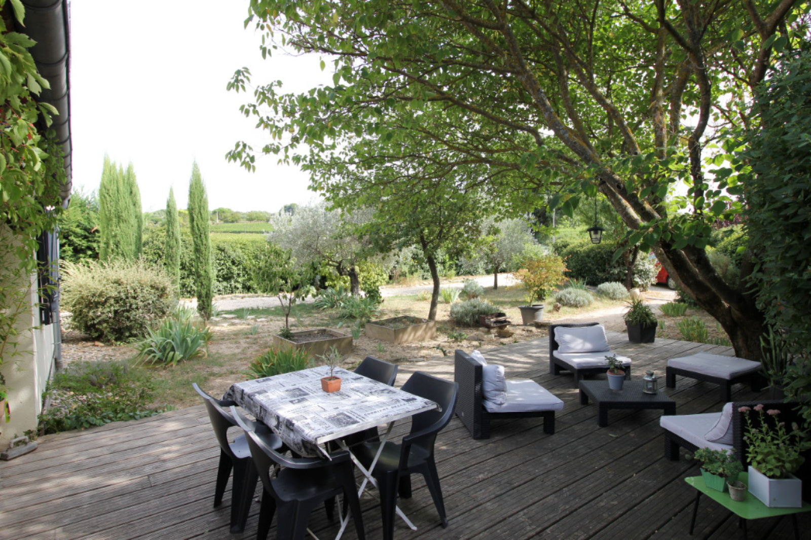 A Villedieu, idéalement située à 7 km de Vaison la romaine, 15 km de Nyons , dans la campagne mais pas isolée, je vous invite à venir voir cette très jolie maison dans un environnement exceptionnellement calme et verdoyant! Dans le jardin, Sous un arbre majestueux est installée cette superbe terrasse en bois qui vous assure de belles journées d'été abritées du soleil! et quand vous passez la porte d'entrée, au rez de chaussée, vous avez une grande pièce de vie très lumineuse avec cuisine ouverte de 57m2 avec insert. une arrière cuisine très utile, une buanderie dressing, un wc séparé, une grande salle d'eau, une belle chambre, un espace bureau ou salle de jeu qui peut se transformer en une belle chambre avec peu de travaux. A l'étage, 2 belles chambres dont une avec double fenêtre, vue sur la campagne. les extérieurs sont bien arborés très agréables et bien entretenus. Côté technique : chauffage clim réversible dans la pièce de vie, insert grande largeur de bûches, convecteurs électriques dans les chambres, au rez de chaussée, fenêtres double vitrage ferronnerie, en Pvc dans les chambres à l'étage. Quelques petits travaux de rénovation sont à prévoir. Malgré la mitoyenneté absolument pas gênante car pas de visuel, vous vous sentez vite chez vous, car la maison est orientée et ouverte sur la nature. Produit rare à la vente sur Villedieu! Pour tout renseignement Lila MOULINET Agent Commercial Indépendant IDIMMO Tél : 06 81 76 46 35 moulinet@idimmo.net RSAC Avignon 819026477