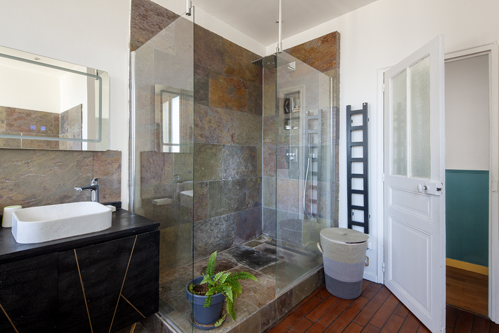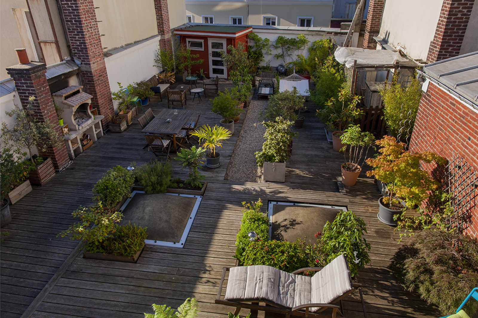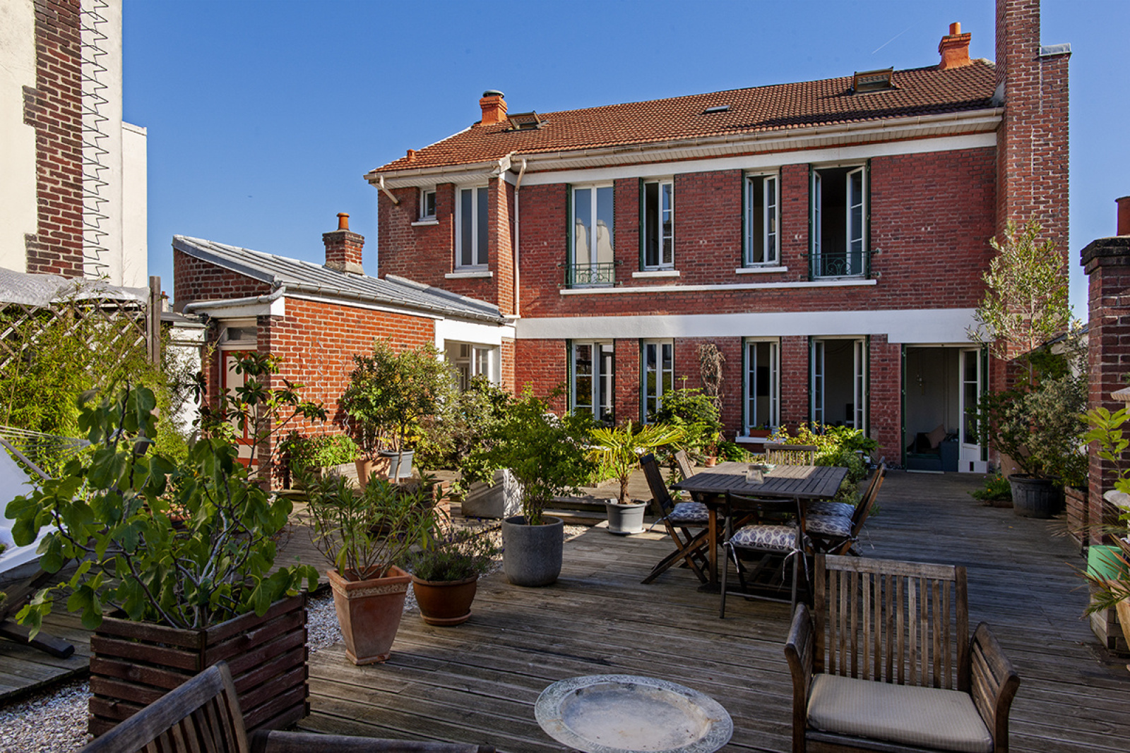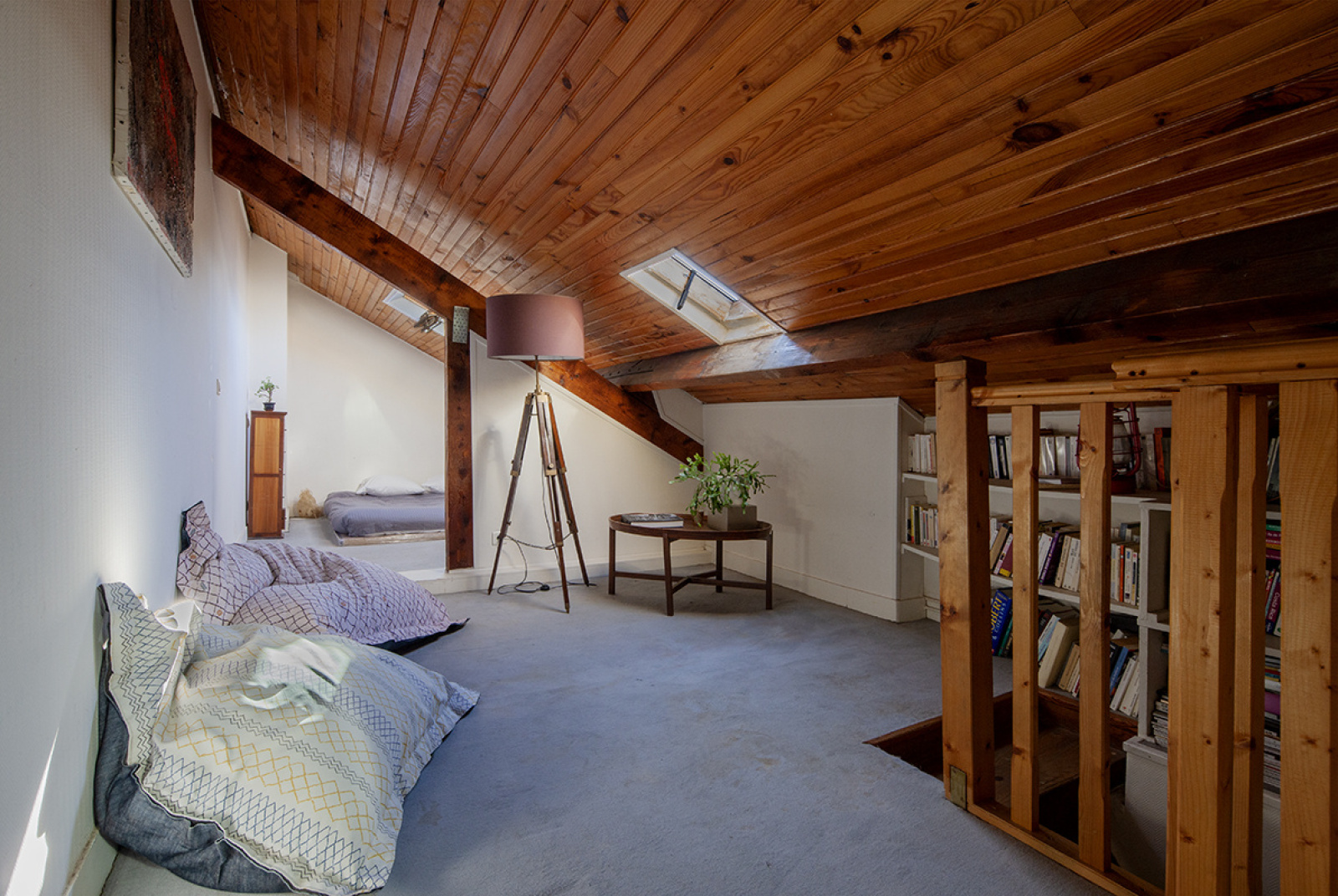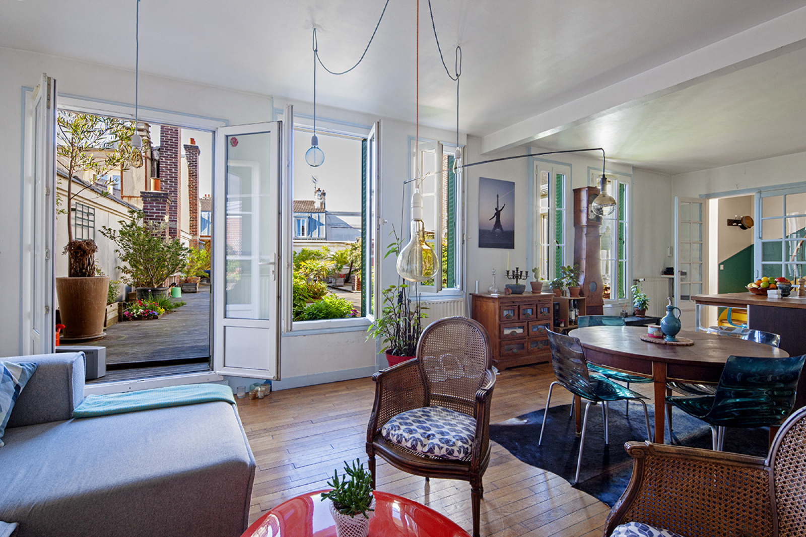 UNIQUE ! Comme un Penhouse en plein coeur historique de Saint-Denis, un duplex de 122m2 habitable (106 carrez) avec combles aménagées et terrasse arborée XXL spéciale jardinage et farniente. Le duplex comprend un séjour de 40m2 avec cuisine équipée et aménagée donnant accès direct à la terrasse, à l'étage deux grandes chambres et une salle de bains familiale (baignoire, douche italienne et double vasque), les combles sont aménagées en deux petites chambres. Un parking vient complèter ce bien d'exception. Transports, commerces et écoles à proximité immédiate. Honoraires charge vendeurs.