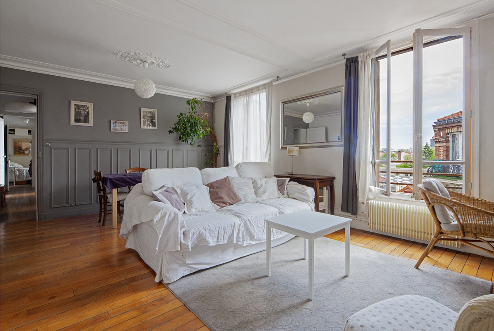 Je vous propose de venir visiter ce grand trois pièces de 62 m2 réunissant tout le charme de l'ancien, parquet, cheminée, moulures, il comprend un grand séjour avec cheminée, deux chambres, une salle de bains des wc séparés et une cuisine équipée et aménagée. une cave au sous-sol .