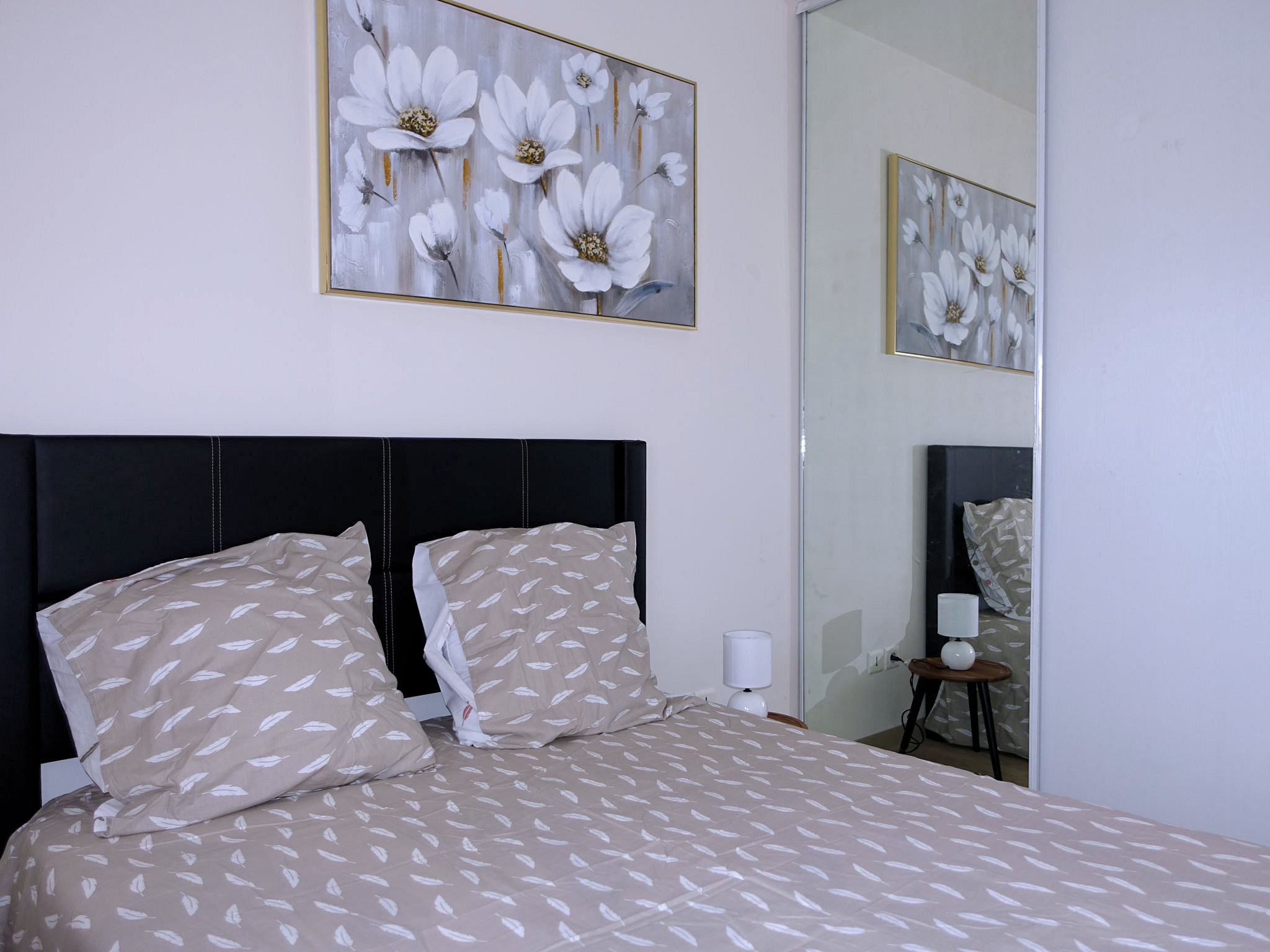 Jolie pièce de vie avec cuisine ouverte toute équipée, deux chambres climatisées avec placard, WC séparé, agréable salle de bain, varangue avec vue et PK en sous-sol sécurisé sauront vous convaincre.