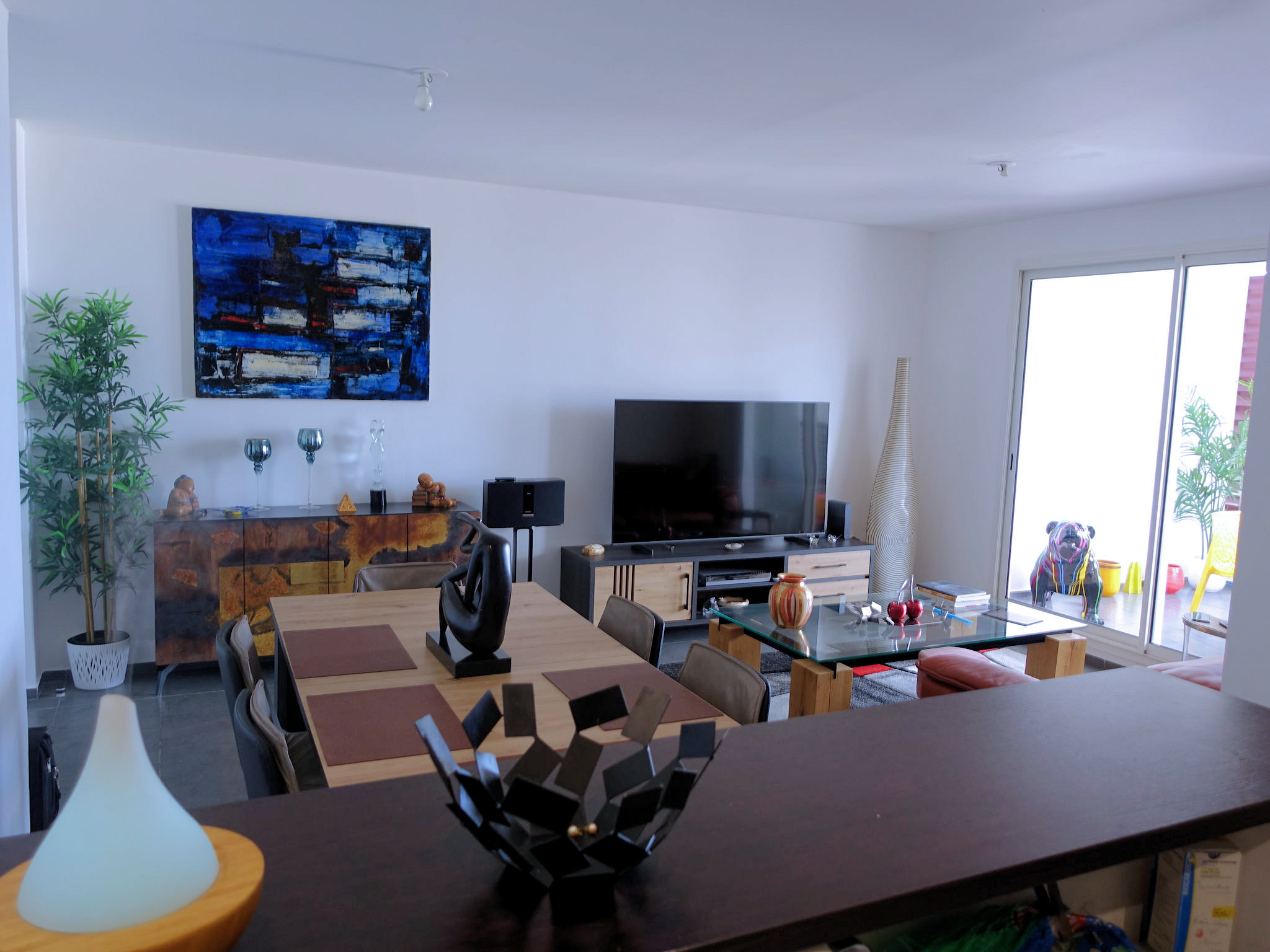 Agréable pièce de vie avec cuisine ouverte toute équipée, deux chambres de 11 et 12m² équipées de placard, WC séparé, salle d’eau récente avec douche Italienne , confortable varangue et PK en sous-sol sécurisé. Les trois pièces sont climatisées. Tout pour vous séduire !